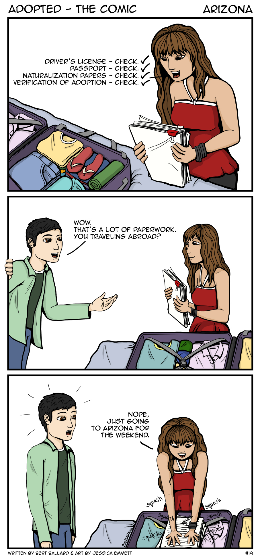 Hummmph…I did have to google it. Not that easy to explain to my adopted Vietnamese 8 year-old, who is a huge fan of your comic! We both check very regularly for new ones and look back at the old ones. Congratulations to Bert for his new son! We’re off to Vietnam in less than a month to try to adopt a baby sister for our daughter. Being British (well, I’m not, but my husband is and we live in London), we’ll have to be residents in Vietnam for at least 6 months. It’ll be great as an adventure and wonderful for Hâuie who hasn’t been back since we adopted her aged 7 weeks, but pretty disastrous financially…Anyway, keep producing the comic because we really enjoy finding the new ones!
