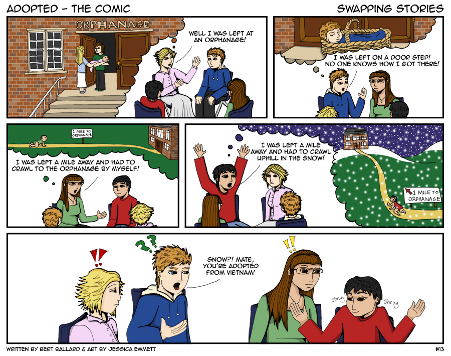 Hehehehe this one made me laugh… people do this even when it’s not about adoption, someone always has to top the last =P… i’ve prob done that myself without realizing it too =P. But there defiantly an air of truth to this comic, prob why i choice it.